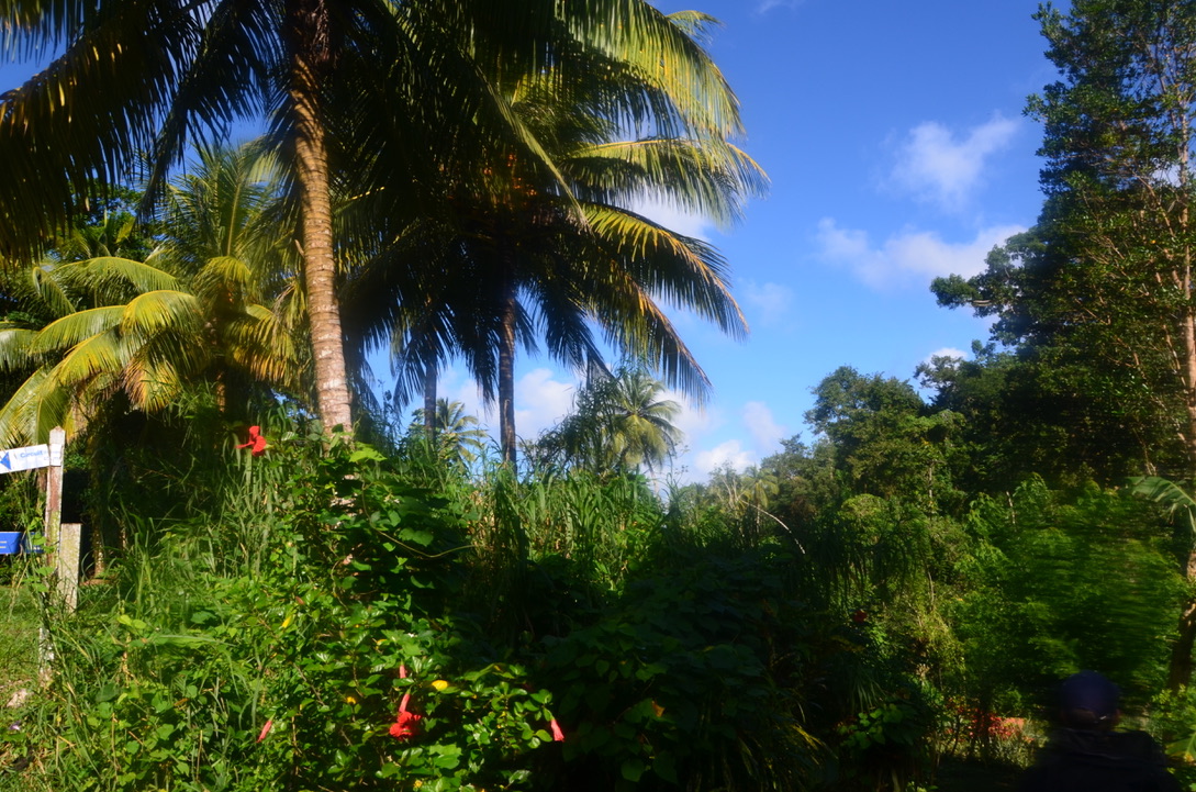 La plupart du temps le sentier est bien visible et dégagé. Il y avait juste une petite section après la fin de la route goudronnée de Grand’rivière qui n’était pas très clair et nous avons eu un peu de mal à trouver le sentier mais le GPS sur le téléphone nous a aidé. Il faut toujours suivre le plus gros sentier jusqu’à voir la direction d’Anse couleuvre sur la droite. Toute la randonnée se passe dans la jungle tropicale et malheureusement il n’y a pas beaucoup de vue dégagée. Au bout de quelques heures j’ai trouvé que la randonnée devenait assez monotone.