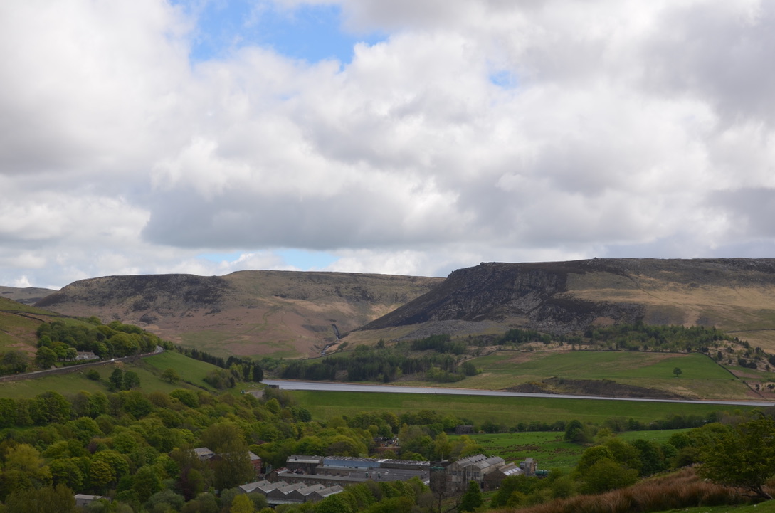 - On the second hamlet, take the path slightly above the previous one that goes towards the Dovestone Reservoir. Continue straight on the path until you reach the paved road. Take a right on this road towards Chew Reservoir.