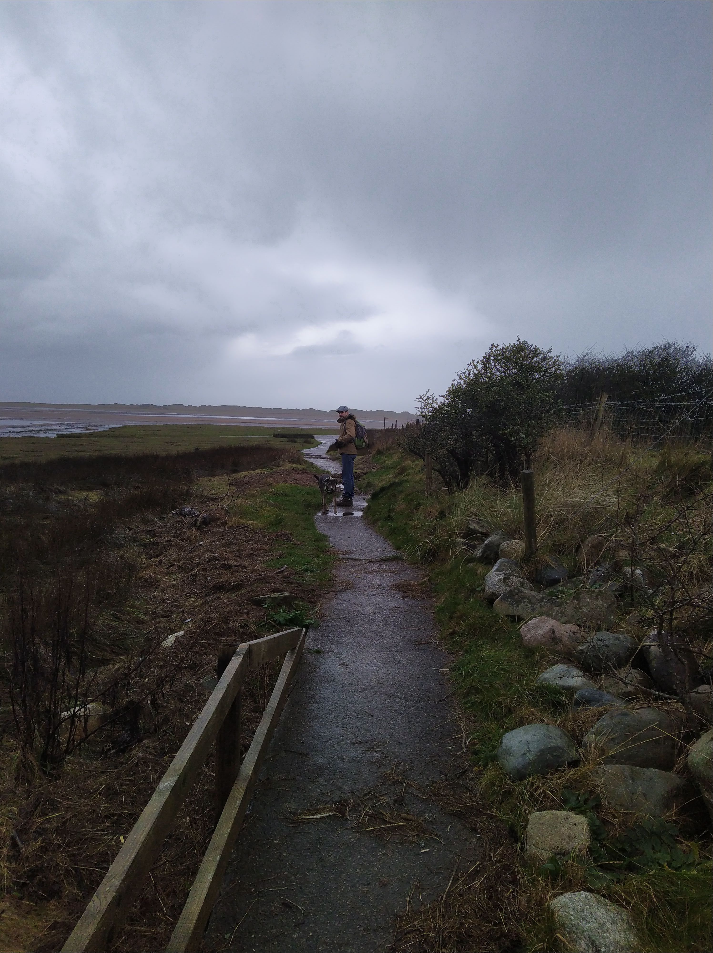 Ce samedi, nous nous sommes donc motivés malgré un temps un peu incertain à aller à Ravenglass. Vu que nous sommes au mois de Janvier nous avons facilement pu trouver un place le long de la route principale de Ravenglass pour nous garer. Nous n’avions pas vraiment de randonnée en particulier en tête et décidâmes de suivre les panneaux du England Coastal Path et de voir où cela nous amènerait.