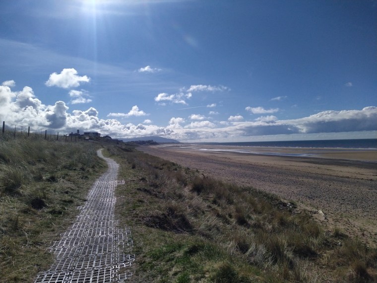 We parked at Seascale beach car park. There is a huge children playground area by the car park. We started by walking on the beach towards Sellafield nuclear site. We then join the gate to cross the train line and arrived at the edge of Seascale golf course that we had to cross. Walkers and dogs are allowed on the golf course but they need to stay on the waymarked footpath. Also be careful with the golf balls that fly close by to the footpath.