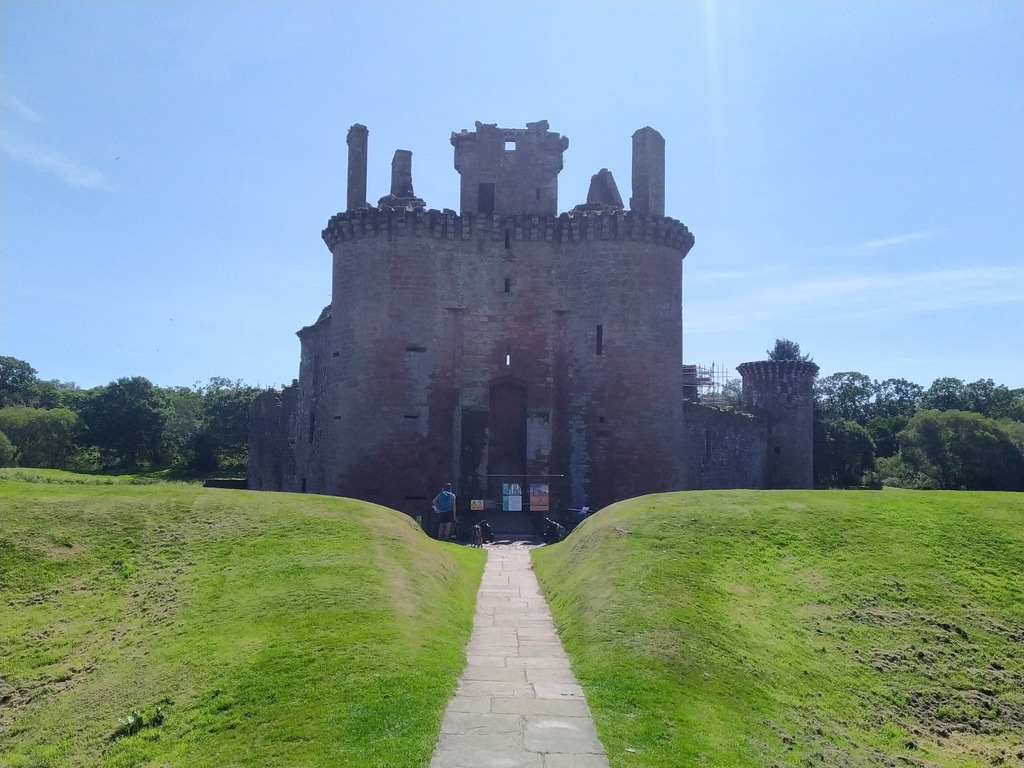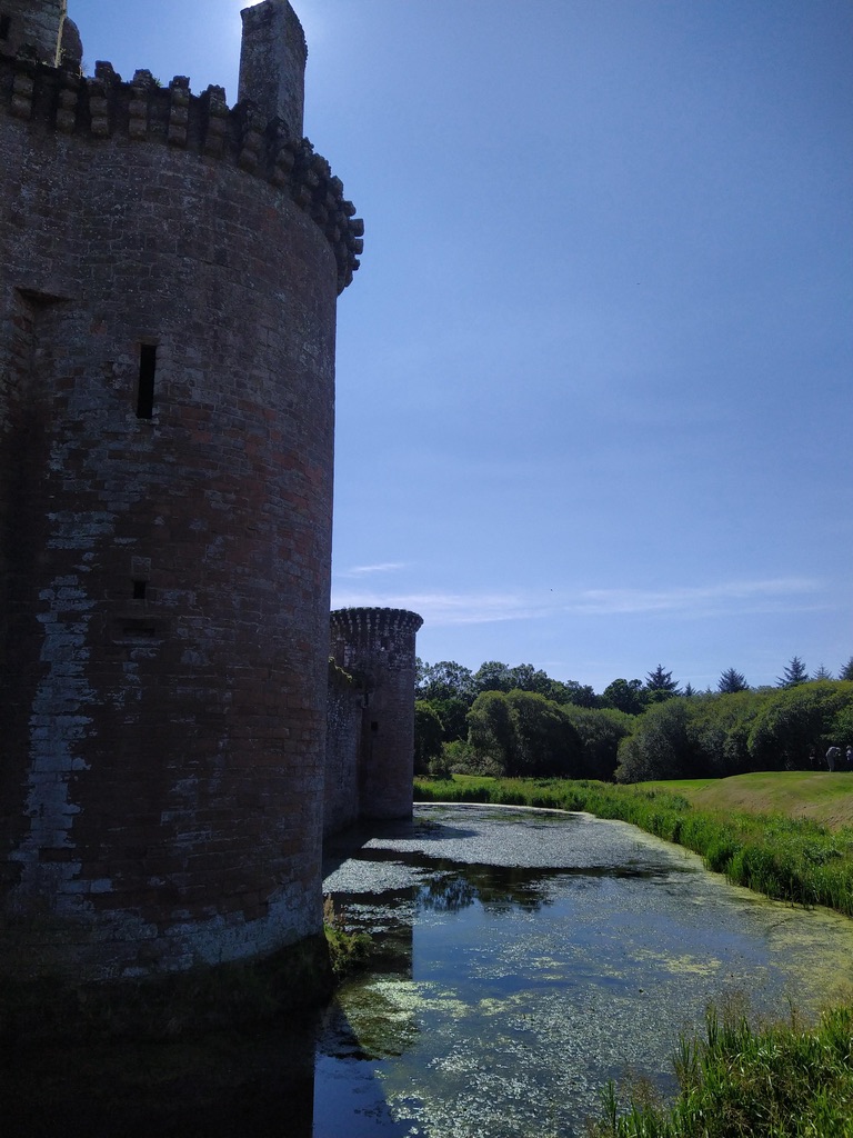 Le château de Caerlaverock est composé de douve, de deux tours jumelles contenant des loges et de remparts. Malheureusement il n’était pas possible de rentrer dans le château lors de notre visite car ils faisaient des travaux d’inspections et de rénovations. Le château de Caerlaverock construit au 13ème siècle a appartenu à la famille Maxwell entre le 13ème et 17ème siècles. Il fût ensuite abandonné au 17ème siècle. Ce château assez particulier a la forme triangulaire a une histoire très intéressante. Il a été assiégé par les anglais lors de la guerre d’indépendance d’écossaise et dû être rebâtit plusieurs fois au cours du 14ème et 15ème siècles. Puis il fût à nouveau assiégé en 1640 par l’armée protestante avant d’être abandonné. Même s’il est maintenant en ruine il est toute de même magnifique à voir.