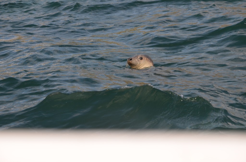 Il était temps ensuite de partir en direction d’Amble pour notre sortie en bateau. J’avais réservé deux jours plus tôt pour être sûr d’avoir de la place. Nous étions un peu stressé pour Skye car c’était la première fois qu’il montait sur un bateau. Il n’était pas très rassuré au début mais après quelques minutes et beaucoup de câlins il finit par se calmer et regarda même les oiseaux voler au-dessus de nos têtes.