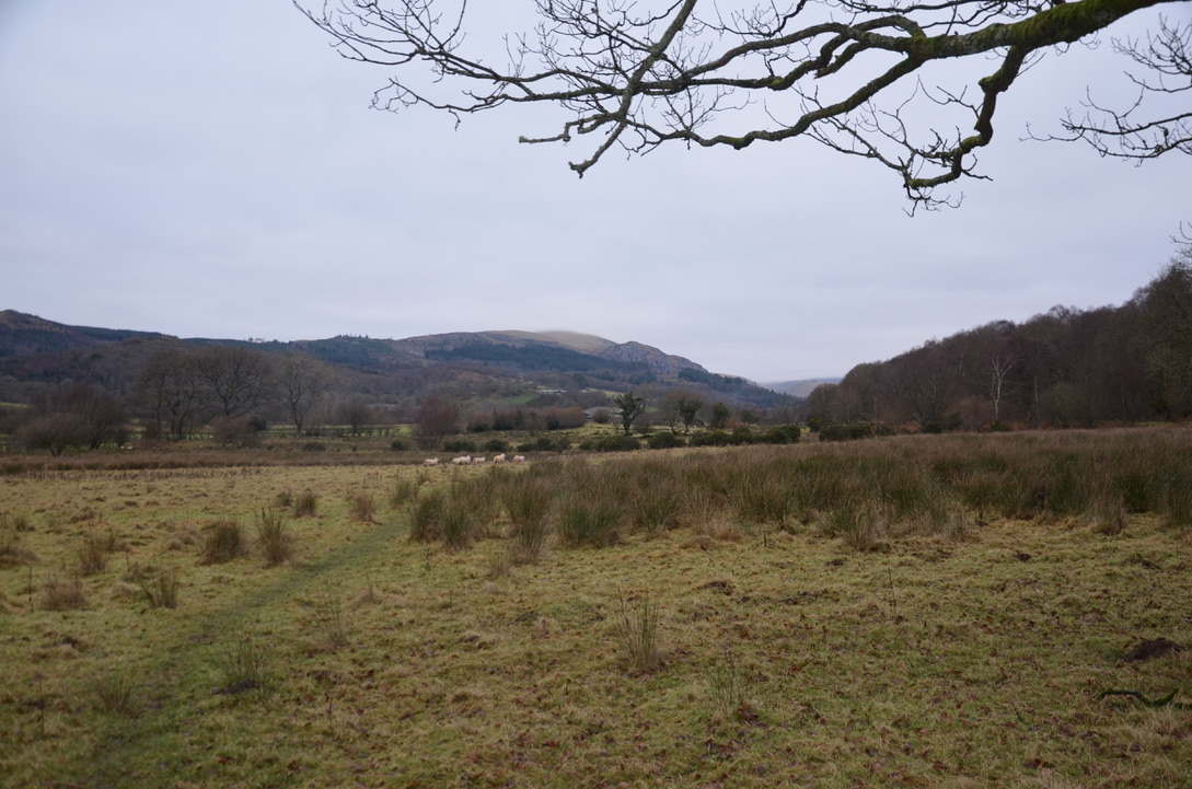 Le sentier suivait la ligne de train et Muncaster Fell pendant un moment avant d’arriver à une intersection où nous avons du traverser la ligne. Nous marchions maintenant de l’autre côté de la ligne de train avec des champs d’un côté et la ligne de l’autre. Après nous être arrêté au petit arrêt de train de Murthwaite Halt et avoir observé les ruines de l’ancienne gare, nous sommes entrés dans un champs qui offrait une magnifique vue sur la vallée d’Eskdale et les sommets distant.