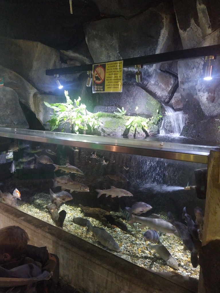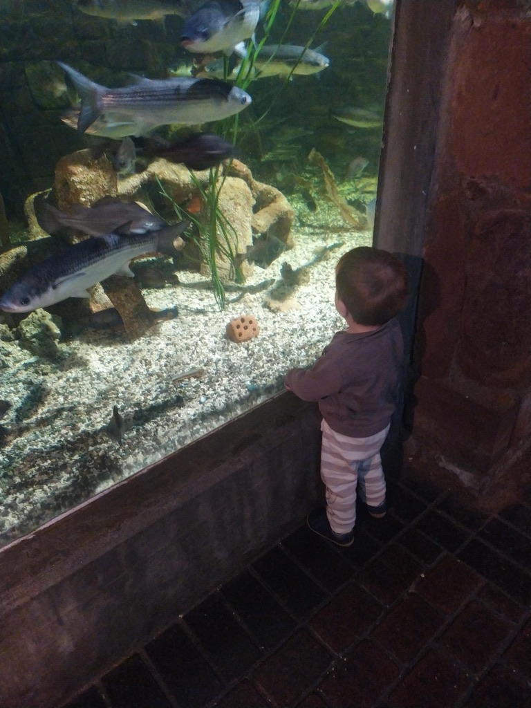 L’aquarium est composé de plusieurs petites pièces qui présentent différent types de poissons comme des carpes, truites, goujons et même des méduses, petits requins et raies. Il y a une pièce avec des bébés poissons et un endroit pour que les enfants puissent jouer. C’est un endroit qui bien pour faire découvrir les poissons aux enfants. Marcus a adoré en tout cas.
