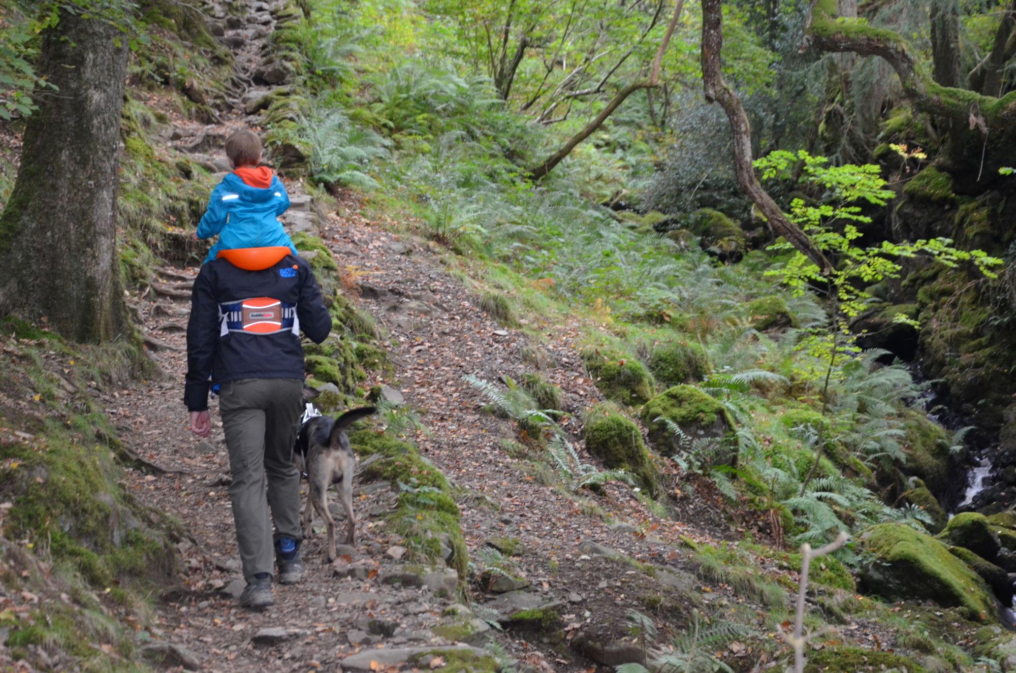- Child friendly: Some steep steps at the beginning of the walk and rocky path that can be hard for toddler. Then grassy path and large forestry track. Not pushchair friendly.